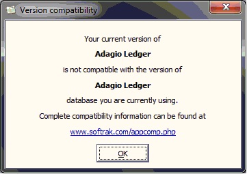 Client restored GL from a nightly back up from a Win2008 sever, on to the network drive and tried accessing the data from a Win XP with service pack 3 workstation, got an error message about the Ledger was incompatible. (See attached)
