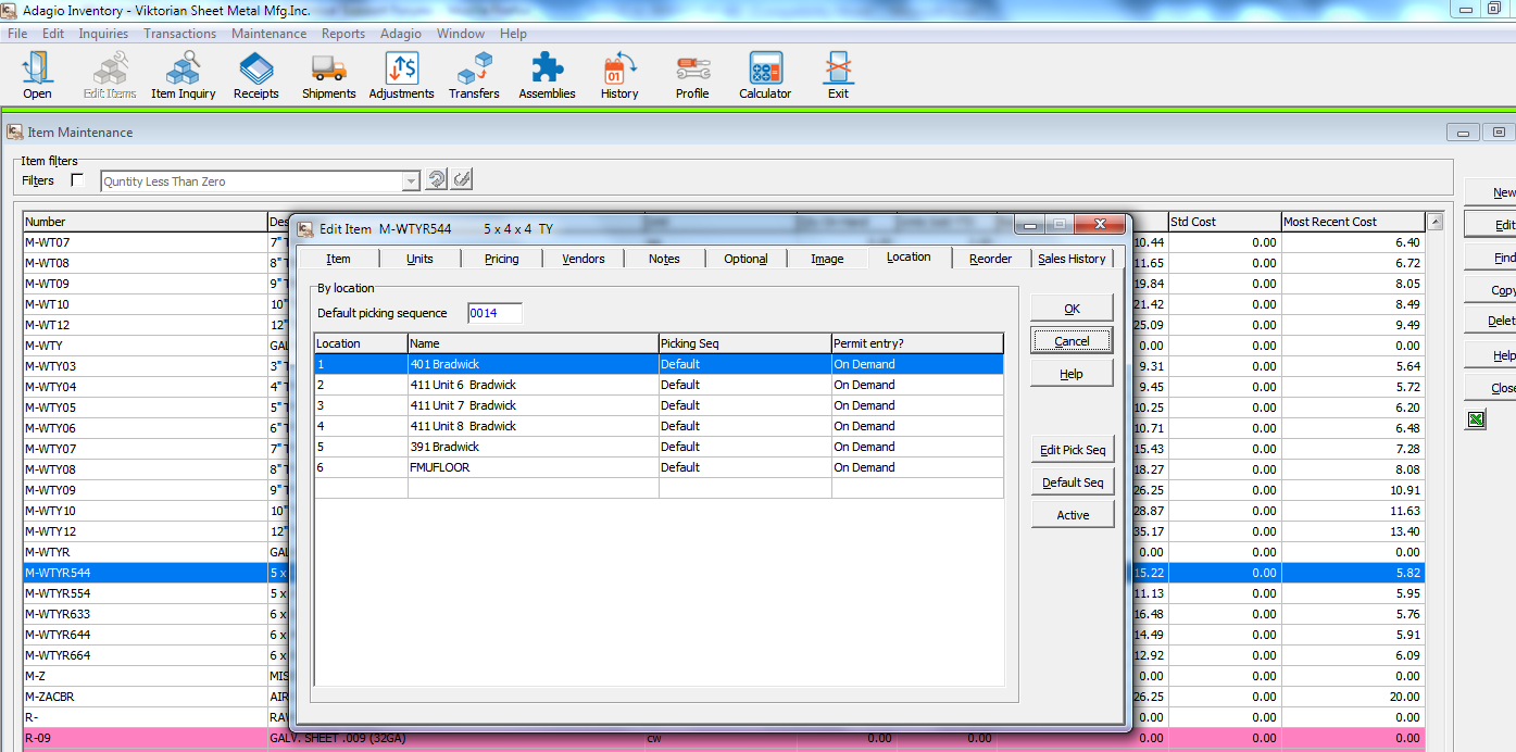 I'm pretty sure I know what happened. All of the items I'm finding had some activity in our old accounting system but have had no activity in Adagio (all were zero quantity items when we switched). They have a pick sequence but no activity. This has caused the two lists to be out of sync. I have two questions though.