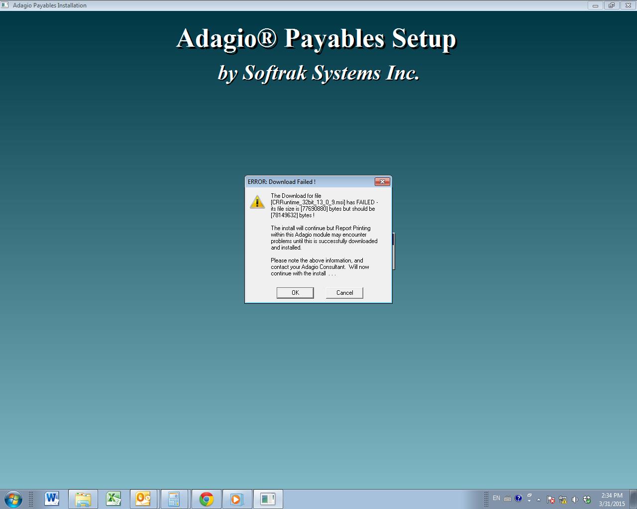 x:\SOFTRAK\system\CR_InstallCommon Folder, then rerun the install to see if that resolves the problem.