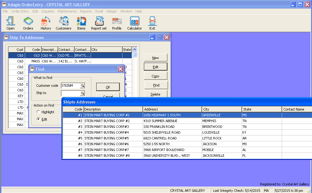 Although, in sample data, 8.1F(150227) records list out fine. It seems like the number of Ship To Addresses records affects it.