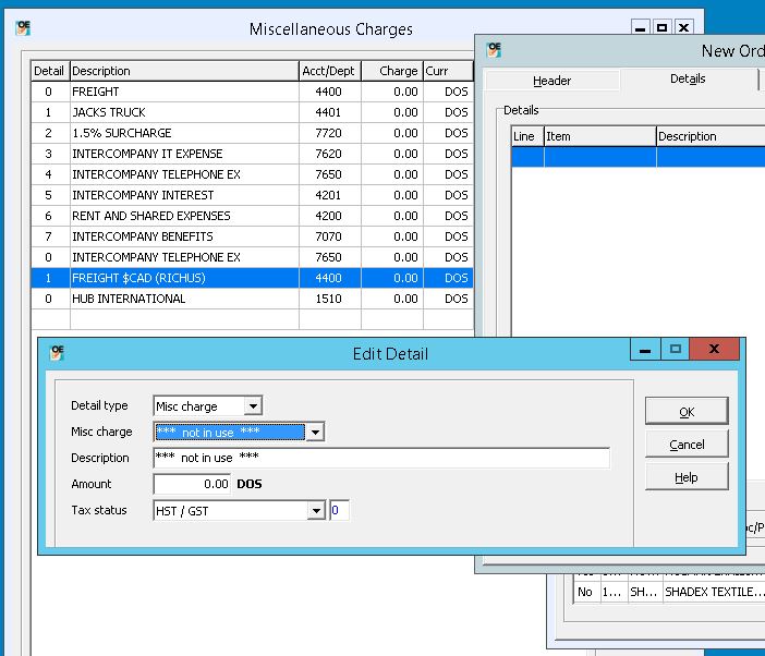 Re: OE 9.2A Misc. charge ***not in use*** problem