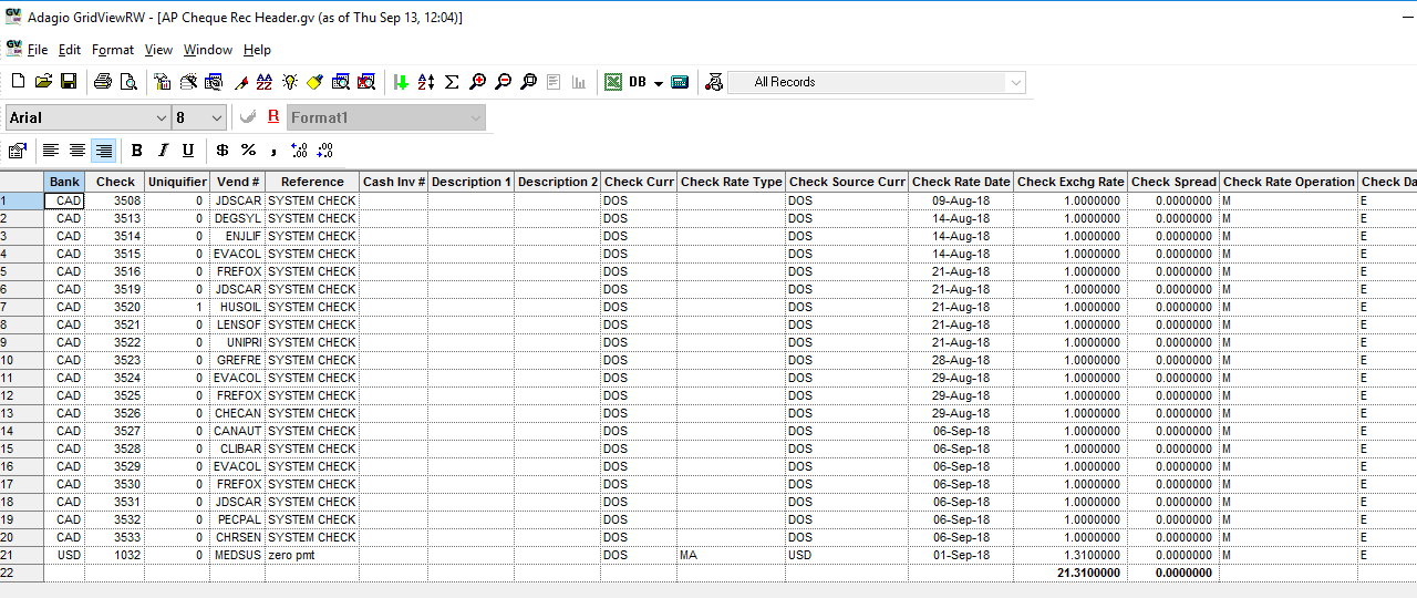 After conversion we have received some sort of scrambled data records in the "A/P Check Reconciliation Header" table (see pics. attached)