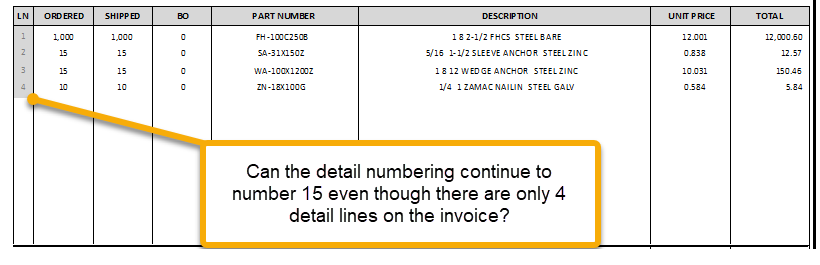 If there is no detail record to print, then there are no line number information to print. So short answer, no.
