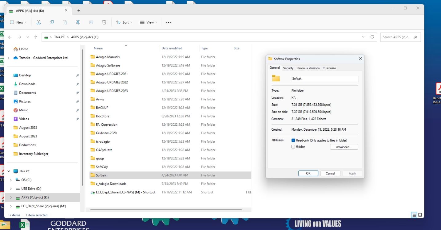 I then took a look at K:\Softrak folder using File Explorer O/s (Windows 11 Pro)